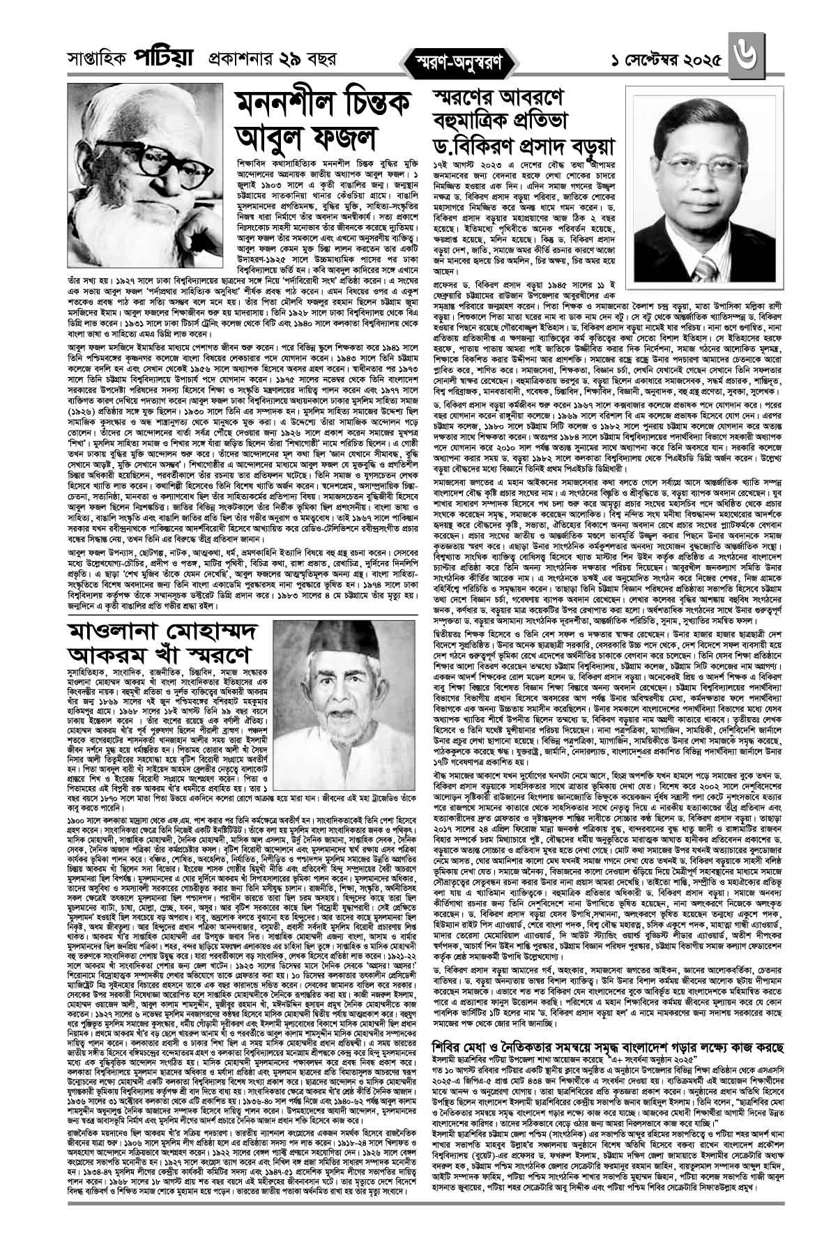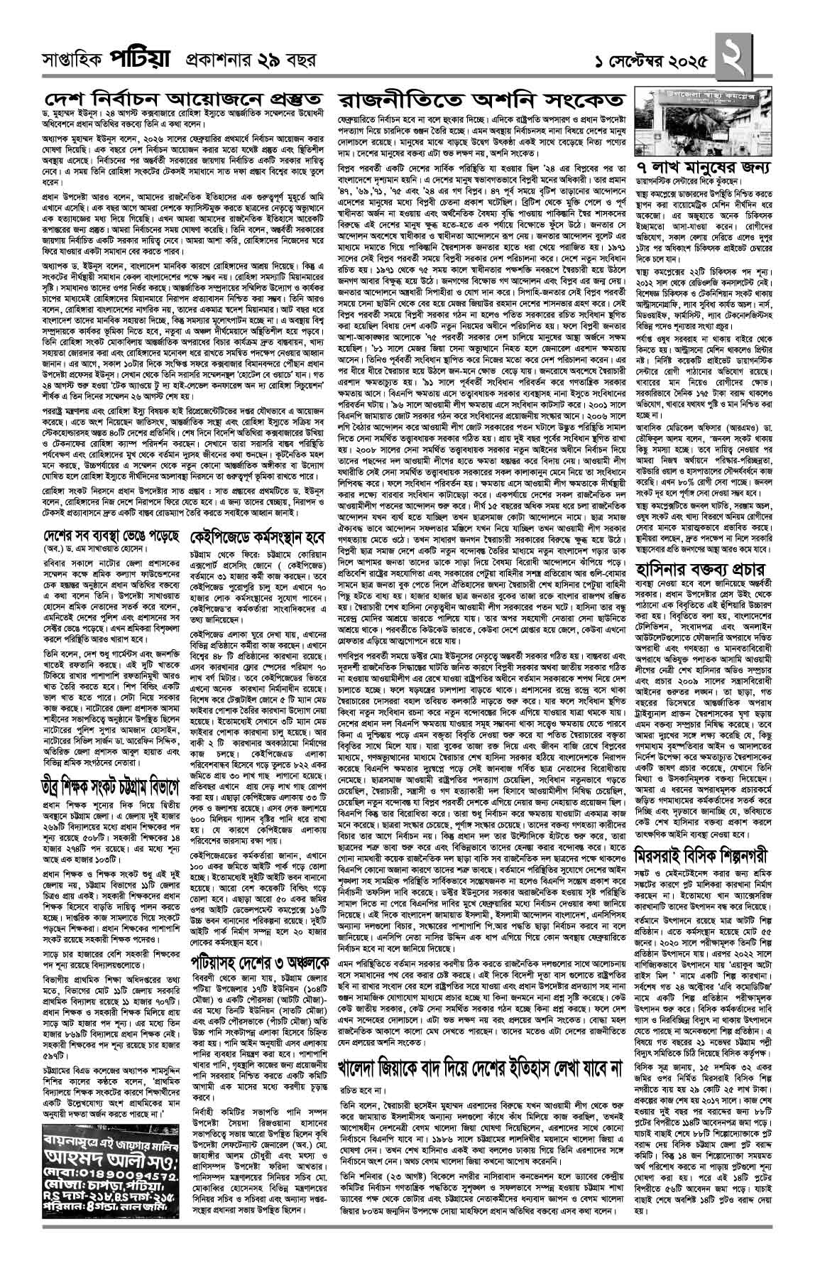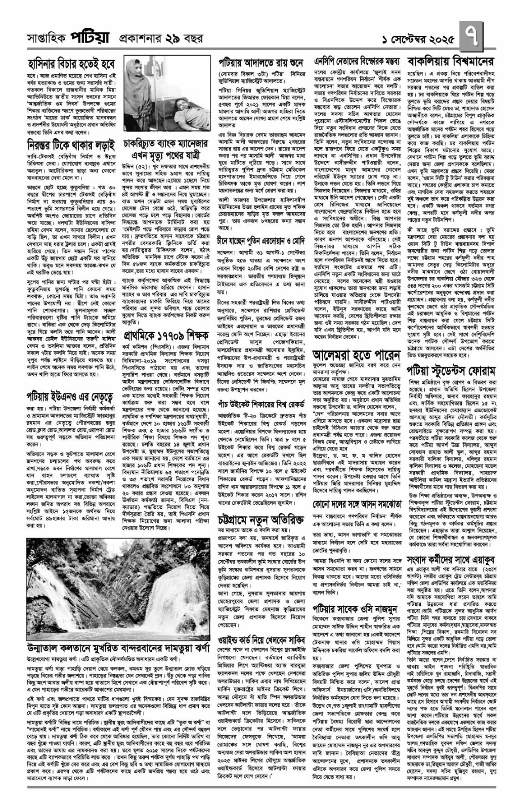 সাপ্তাহিক পটিয়া ১ সেপ্টেম্বর ২০২৫